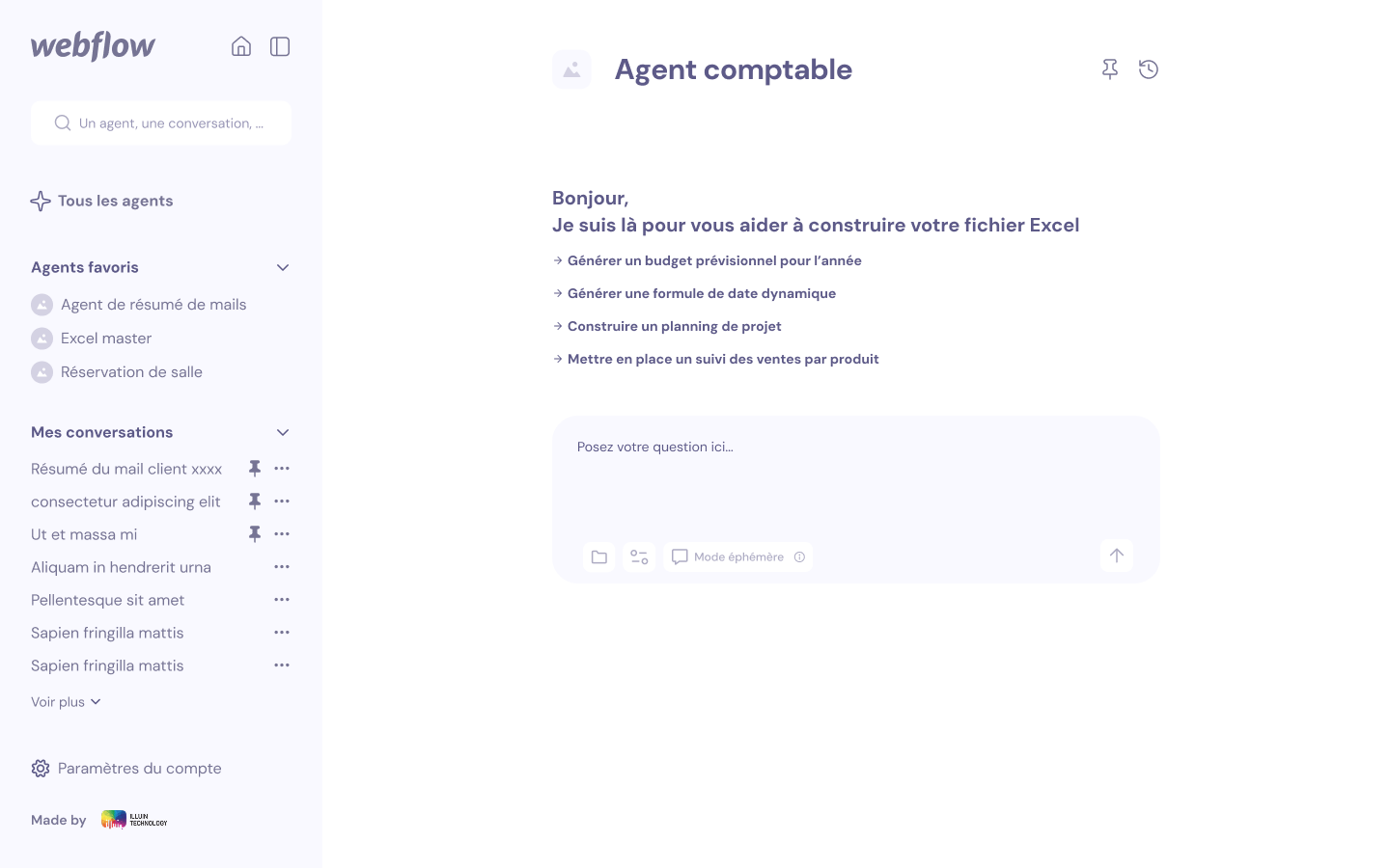 D’abord, l’Agent est devenu l’élément pivot. Structurer toute l’expérience autour de ce concept a permis de simplifier l’arrivée dans l’outil et d’offrir un cadre mental clair, même pour les utilisateurs peu familiers avec l’IA.